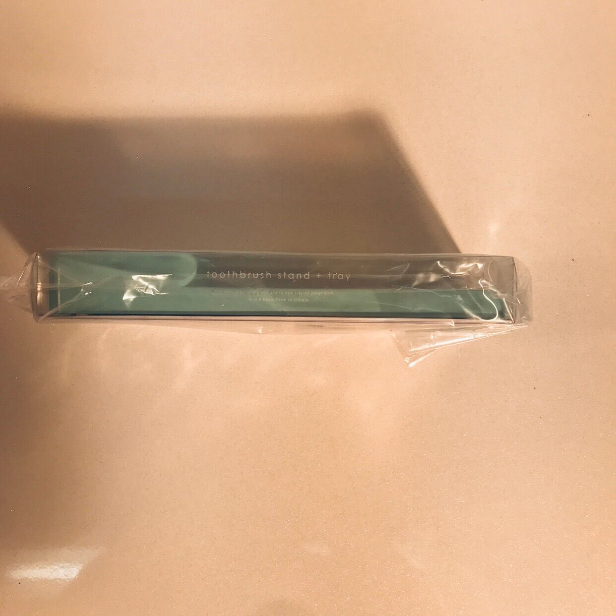 歯磨きチューブやタンブラーをまとめて収納できるトレーつきの歯ブラシスタンド。